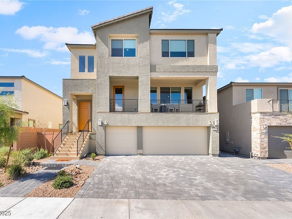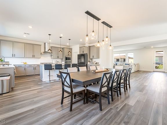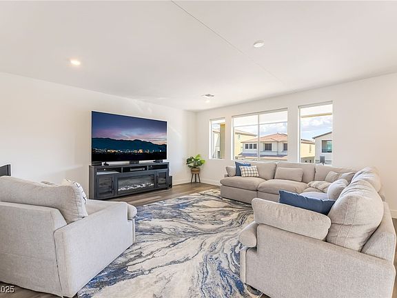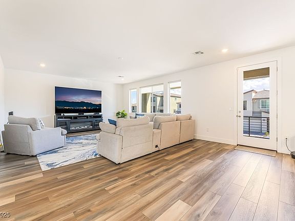 Beautiful 3-story gem with rooftop deck in a desirable neighborhood! This 2024-built 5 bed, 4.5 bath, 4,108 sq. ft. home features over $60K in upgrades and a 3-car garage. Designed for flexibility, it offers dual owner’s suites—one on the first level with a private living room and direct access to a finished backyard with turf, misters, and covered awning. The main level boasts an open kitchen, dining, and living area that flows to a large patio for indoor-outdoor entertaining. Upstairs, the second owner’s suite and additional spacious bedrooms provide comfort and privacy. The crown jewel is the rooftop deck with panoramic mountain and Strip views. Low monthly HOA, close to top-rated schools, shopping, dining, and freeway access. A rare opportunity blending style, convenience, and value—schedule your private tour today!