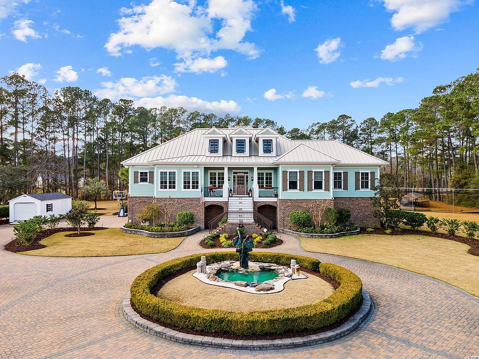 Truly one of a kind home in Murrells Inlet. The homes low country design incorporates quality craftsmanship with comfort, livability and the ultimate in privacy. This custom estate home sits on more than 9 acres of beautifully manicured grounds. You first enter through the electronic gate and will meander down the custom brick driveway lined with beautiful trees to arrive at the elegant fountain leading to the grand staircase. This estate has everything needed for the ultimate entertaining experience, including a saltwater swimming pool and hot tub spa with waterfall and four corner fountains. The pool is surrounded by a massive deck, pergola, a custom outdoor kitchen, wood burning fireplace and an outdoor large screen TV. Every chair can have its own electrical outlet equipped with a USB port to keep yourself connected while basking in your private oasis. And all of this is surrounded by magnificent landscaping to provide additional privacy. You will walk up the staircase to a huge inviting porch. When you enter this exquisite home, you will be greeted with an open and airy concept, that beams with natural light and Brazilian cherry wood flooring. The main level features a formal dining room, living room with a wood burning fireplace and a fully upgraded kitchen, including granite countertops, stainless steel appliances, gas/convection oven, breakfast bar as well as an ample breakfast nook. The huge walk-in pantry is a pleasant surprise, with custom shelving and cabinets. Across from the pantry is a well-designed laundry room with plenty of cabinets and counter space for folding. Also, on the main level is the inviting owners suite with tray ceilings, ceiling fan and lots of natural light. The owners suite also includes his and her bathrooms and closets. Rounding out the main level is an elevator, a half bath and an elegant office with coffered ceilings and built-in floor to ceiling bookshelves. Whether exiting from the main living area or the owners suite, there are french doors leading out to a grand porch overlooking the pool and estate. On the lower level, there are three additional bedrooms and three additional full baths, one of which can be accessed from the outside pool area for convenience of your guests. Also, on the lower level is a fantastic entertaining area which includes a full bar with sink, gas fireplace, stainless refrigerator, gaming area and a great room to watch the games on a big screen TV. There is an oversized 3-car side load garage with epoxy floors with enough room to hold several cars, motorcycles and other toys, and still set up an indoor gym. The garage is fully heated and cooled with a sound system. Home has a whole house water filtration system installed, a 24-zone irrigation system that runs off of a separate well, a 60 kilowatt generator and an entirely upgraded 600 amp electrical service, where every tree in the front of the house has an outlet for landscape lighting. Home also includes humidifiers, tankless water heaters, 2 interior fireplaces, central vac system, 3 HVAC systems and solar panels. All of this plus state of the art WIFI, security cameras, sound system and 100% LED lighting systemall controlled from your phone! So many upgrades they cant all be listed here. You would expect a home of this magnitude to be out in the country, not conveniently located in the middle of Murrells Inlet. This private 9 acre oasis is in the award winning St. James School District and is minutes from the restaurants at the Marshwalk, the beautiful Atlantic ocean, airport and all that the Grand Strand has to offer. You need to come and see this special home for yourself. This one of a kind home will not last!