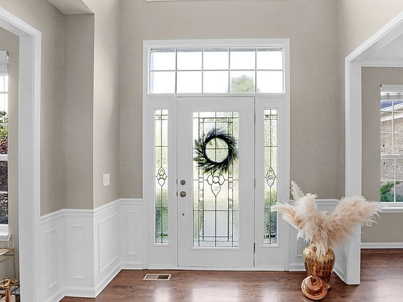 Expansive entertainment areaFresh white cabinet finishQuartz countertopsReplaced exterior window trimPrivate serene primary suiteSweeping staircaseSpacious foyer