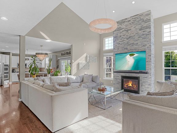 Welcome to 10198 Ranford Blvd! This impressive 2-story home with a finished basement has been thoughtfully renovated and beautifully maintained, offering both comfort and style. A spacious foyer with a sweeping staircase makes a grand first impression, while the soaring 2-story great room sets the stage for gatherings or quiet evenings by the fire. The gourmet kitchen has been elevated with quartz countertops, a fresh white cabinet finish for a clean, modern look, a new backsplash, and a gas line added for the option of a gas stove. New chandeliers throughout the home add elegance and warmth. The fireplace surround has been updated with decorative stone, creating a striking focal point. The updates continue with all five toilets replaced, a refreshed half bathroom, and a modernized laundry room featuring a new sink and cabinet. The home office, basement, and dining room have been freshly painted for a bright, inviting feel. The basement itself has been fully renovated-including new paint, staircase updates, and flooring to replace the carpet-transforming it into a stunning space for entertainment, relaxation, or hosting guests. Practical upgrades include a new roof, gutters, and finished garage walls (all in 2022), along with replaced exterior window trim and seals for added efficiency. With 4 bedrooms and 3 full baths upstairs-including a private, serene primary suite-plus a basement bedroom, 4th bath, and expansive entertainment area, there's space for everyone to grow and thrive. This home blends modern updates with timeless charm, making it the perfect place to create lasting memories.
