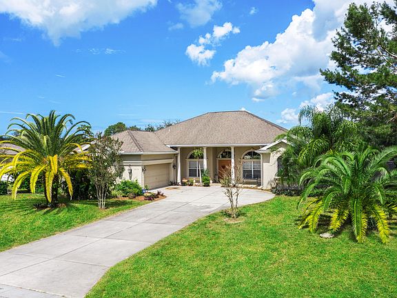 Impressive 3 bedroom, 3 bath pool home in Orchard Park! This spacious home is located on a half acre lot with mature palm trees. Interior finishes include an open, bright and functional split floor-plan, 10' ceilings throughout, 8' exterior and interior doors and new flooring in the family room and bedrooms. The airy kitchen features ample cabinets, tile backsplash, granite counter tops, breakfast bar, pantry and stainless steel appliances. The family room includes built-ins, tray ceiling with crown molding and a fireplace. The main bedroom features private access to the lanai, two walk-in closets and a private bathroom with separate vanities, center soaking tub and a walk-in shower with a beautiful stained glass window. Both guest bedrooms are large and split from each other with designated halls. Exterior highlights include a massive paver pool deck and a refreshing pool with bird cage enclosure. Orchard Park is located in the heart of Spring Hill. Convenient to shopping (Publix, Winn Dixie, CVS, Walgreens, Murphy's Market), an assortment of restaurants, medical facilities, schools, churches, Tampa International Airport via Suncoast Parkway, white sandy beaches and breathtaking springs.
