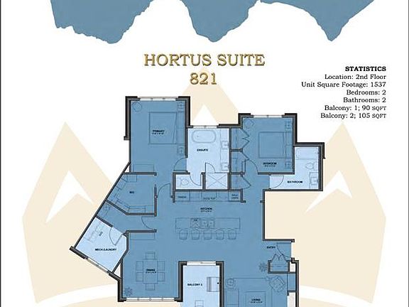 Welcome to Unit 821 in the newly released Hortus Building by The Canmore Renaissance, located in the heart of Three Sisters Mountain Village. This spacious 2-bedroom, 2-bathroom home is situated on the second floor and offers 1,537 sq ft of interior living space paired with two private balconies to capture the surrounding mountain views. The interior features a luxurious primary suite with a spa-inspired 5-piece ensuite, a generous guest bedroom, and a second full 4-piece bathroom. The chef’s kitchen is designed with quartz countertops, panel-ready Bosch appliances, stained and painted millwork, and "Alpine" design palette. Additional highlights include engineered hardwood, porcelain tile, luxury vinyl tile, and an LG washer and dryer. The pet- and kid-friendly building provides access to premium amenities in the nearby Abruzzo Building, including underground parking, a fitness centre, and a shared recreation lounge. As a special incentive, the developer is offering a free 1-year Stewart Creek Golf Club membership to the first buyers who go firm on a unit. Private tours of the show suite are available by appointment. With only 8 luxury residences in the Hortus Building, each offering unique layouts and views, this is a rare opportunity to secure a premier home in one of Canmore’s most desirable developments.