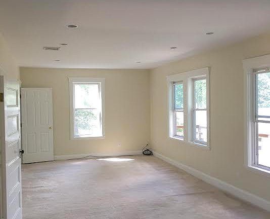 Super spacious & sunny 4 bedroom, 2 bath duplex unit in wonderful condition on 2nd and 3rd floors with 2 car parking + guest spot, Central air, large deck and fabulous yard, laundry in the unit, Great closet space, Open living room/ kitchen/ dining room floor plan. Bed and full bath also on the first level with 3 good size rooms on the 2nd floor. Newer carpet. Gas heat and hot water. BOWEN/MASON RICE. Small pet may be negotiable on a case by case basis.