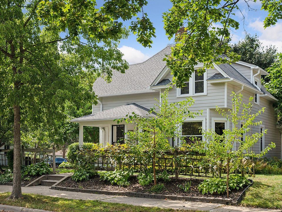Steeped in history and charm is this delightful 2-story just steps from Downtown Hopkins. Nestled on a large corner lot with gardens and privacy fenced backyard. Many updates include new siding, new roof, new windows, and more. The covered front porch greets you as you enter this classic home with original millwork and built-ins. Freshly painted and newly refinished original maple flooring throughout the main level. Renovated kitchen includes stainless steel appliances and granite counters. Walkout to the back screened porch leading to the backyard and extra-large 2 car garage. The upper level is complete with four bedrooms and a ¾ bathroom. Lower level is freshly painted and awaiting your finishing touches! Wonderful high ceilings, laundry room, finished office/flex room, and access to the backyard. A truly special home with character throughout! Walk to parks, restaurants, Stages Theatre and more!