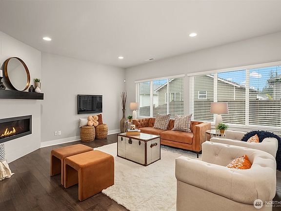 Spacious, modern and thoughtfully designed, this Normandie Crest home offers flexibility and comfort across 2,692 sq ft. The main level features an open concept great room, formal dining, quartz kitchen with walk-in pantry and a main floor den ideal for remote work. Upstairs, an expansive primary suite with coffered ceilings, a 5-piece bath and walk-in closet anchors a smart layout with three additional bedrooms, a full bath, laundry, and a central loft-style bonus area. Hardwood flooring continues through the upper hall and bonus space. Additional highlights include central A/C, a covered back patio for year-round use and a spacious two-car garage. Tucked on a quiet street with easy access to I-5, I-405, shopping and dining. Pre-inspected.