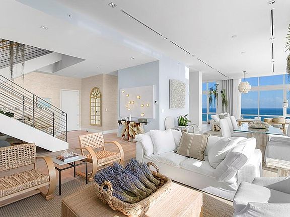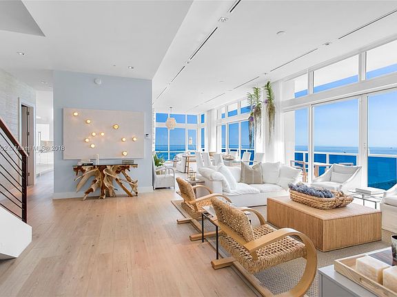 This rare 2 story southeast corner "Trophy" Penthouse features award winning interior design by Liubasha Rose. 3,955SF of "Turn-Key" living with breathtaking direct ocean views!Top of the line finishes;Italkraft kitchen,Wolf/Subzero appliances & white oak flooring throughout.LEED Certified Hotel living;rooftop pool,bars & sand filled lounges.Private residential lobby,concierge & chauffeured Tesla.600 linear ft of beachfront, 4 pools,14,000SF fitness center,Bamford Spa,full beach & pool service,valet & more.