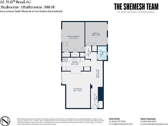 Welcome to Residence 6G. This beautiful designed 2-bedroom, 1-bathroom home offers a bright and spacious layout.