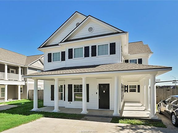 Welcome to 100 and 102 A Sterling St - Package of Spacious 5 bedroom, 5.5 bathroom homes with NO CARPET and all new LVP flooring in one of the most convenient locations in town. Situated just off Texas Avenue, this property offers quick access to H-E-B, Target, restaurants, and Texas A&M University, making it a highly desirable rental that leases with ease. Step inside to find 2 living rooms - one on each floor– perfect for entertaining or relaxing with friends. The kitchen is designed for function & style with ample granite countertops, eat up peninsula, a walk-in pantry, and two refrigerators, giving plenty of space for everyone. You’ll also love the large laundry room for added convenience. The downstairs bedroom features an ensuite bathroom with double vanities, a separate shower, and a tub/shower combo. Downstairs you'll have direct access to the covered patio and fully fenced backyard. Upstairs, you’ll find four additional bedrooms, each with its own ensuite bathroom and tub/shower combo. The second-floor living room is massive, complete with extra storage and a wet bar – an ideal hangout spot for roommates or guests. This home is already leased through July 2026, making it a fantastic turnkey investment or long-term rental property in a prime location.