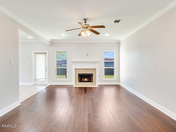 Welcome to this bright and spacious 4-bedroom, 2.5-bathroom home, freshly painted and filled with natural light. The main level features an inviting living room centered around a cozy gas fireplace. The kitchen is equipped with classic white cabinets, a gas range, and ample counter space. Enjoy flexible dining options with both a formal dining room and a separate breakfast area for casual meals. Retreat to the convenient downstairs primary suite, which boasts a large walk-in closet and an ensuite bathroom. The primary bath is a complete oasis with a double vanity, a separate shower, and a relaxing garden tub. Upstairs, discover a versatile bonus living area, ideal for a media room, home office, or extra lounge space, along with the additional spacious bedrooms. Outside, the large backyard provides plenty of room for recreation and relaxation. This home is ideally situated close to a variety of shopping, restaurants, and the local library.