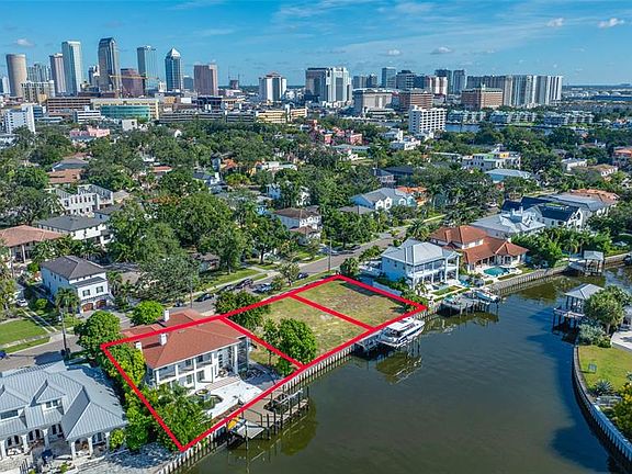 SAILBOAT WATER homesite in one of the most desirable locations on Davis Islands. Walk to work at Tampa General Hospital or be downtown in just minutes. This homesite is located just a handful of homesites away from the open bay with no bridges in the way and some of the deepest and widest canal locations one will find on the islands. Bring your big sailboat or fishing boat with tuna tower ... both would fit just fine. Dimensions are approximately 75 x 108 so there's plenty of width and depth for your own urban waterfront oasis. In fact, your future new-build will even afford you fantastic downtown skyline views to the north to accompany your fantastic waterfront views to the south. Do you desire more land for your waterfront design plans? The adjacent homesite of near equal dimensions (104 Adalia) is also available for $3.5m. Having both will provide you a fully completed dock which straddles the two homesites and is equipped with a heavy-duty lift and full electric and water. Still need even more space? Why not add 96 Adalia to your shopping cart. This high and dry, partially upgraded residence, boasts approximately 4500 sf. of conditioned space and 6100 sf total under roof. Soaring ceilings and a 3 car garage set the tone for someone looking to wrap up the upgrading to their own tastes. The homesite, itself, is the star of the show. Boasting dimensions of 100 x 121 and a massive dock with boat lift as well as a platform lift for water toys, these features alone make the house a very nominal expense while being located on an extremely wide confluence of 2 separate canals ... making for easy maneuverability and privacy. If one purchases all 3 properties, the seller will throw in his very lightly used 2021, 36’ power cat cruiser located on site! This provides for 250' of water frontage, 2 large docks, and a nearly completed home update.