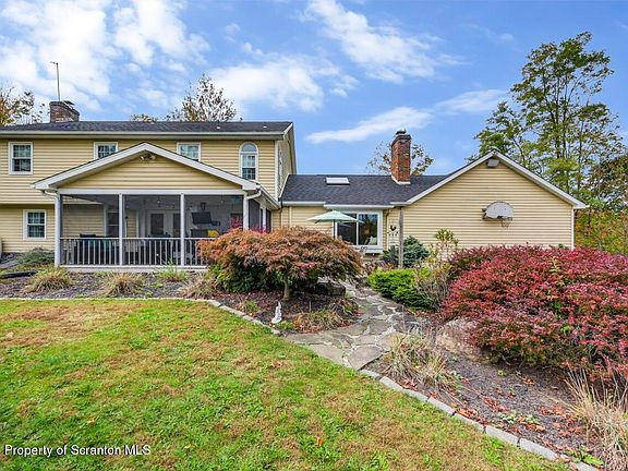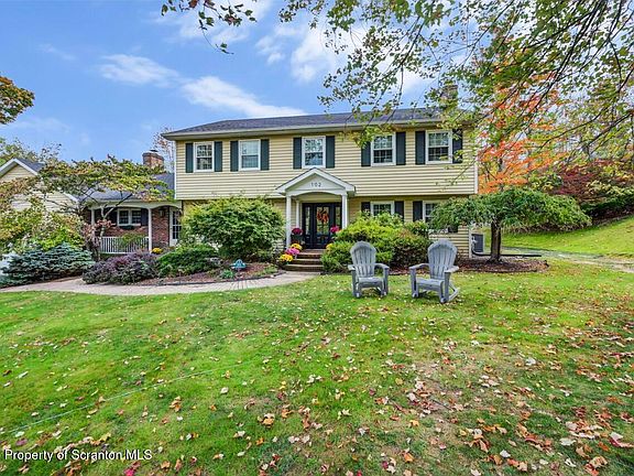 Showings begin after OPEN HOUSE on Sunday October 12th from noon-2PM. This completely updated home has it ALL for the active family on almost a full acre of land in the heart of Abington Heights. 4 bedrooms and 2 full baths on the second floor including a master en suite, and a 5th guest bedroom with another full bath on the lower level. Kitchen boasts quartz counters, stainless appliances, and custom cabinetry overlooking the family room with a beautiful wood beamed ceiling. Central air and hardwood floors, 2 gas fireplaces, a full sized laundry room and a huge mudroom with a space for each family member. Master bath has a claw foot tub and a large dressing area overlooking yard.A game room/gym area, bar and media room are on the lower level ideal for entertainment in addition to the ample storage and guest room quarters. This is a large lot and the owners recently removed many trees in the rear to create a bigger yard. The roof on the home was JUST replaced in September 2025. This home has so many more features and surprises like double coats closets and a large foyer inside the front entrance, glass faced cabinets in the kitchen, a screened in porch overlooking the yard, a basketball/pickleball area the family loves to use, and so much more! Come see this beautiful home for yourself.