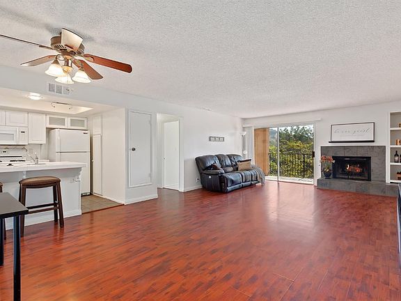 Step away from the sounds of the city as you wind down in your own 2 bedroom, 2 bath move in ready condo. This end unit has been freshly painted and new carpet just put in the bedrooms. It is conveniently located not far from the pool and guest parking is just across from the unit. 2 lovely balconies, one off of the master bedroom allows you to enjoy a tranquil setting as you listen to the birds and look amidst the trees to the skyline. The kitchen is open to the living room so you can watch TV or visit with your family and friends if you like as you are preparing your favorite meal. The primary bedroom has its own bathroom and a big walk-in closet.There are programs for the first-time homebuyer so stop paying rent and build some equity in your own home!