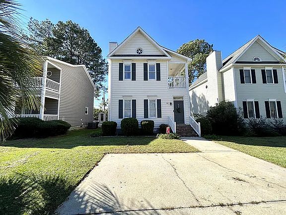 Fantastic Charleston-style two-bedroom, 1.5-bathroom home located just outside downtown Columbia, with quick access to I-26, Riverbanks Zoo, and Lexington Medical Center. Private parking is available at the front of the home. The front porch opens into a spacious living room, which boasts wood flooring and a fireplace. The well-equipped kitchen features tiled floors, granite countertops, and stainless steel appliances. The dining room, located off the kitchen, offers a vaulted ceiling and a convenient pass-through window between the rooms. Sliding glass doors from the dining room open onto the rear deck, which overlooks the fully fenced backyard. A cement pad in the backyard provides space for grilling. A convenient half bathroom and a laundry closet complete the main level. The second-floor landing includes a linen closet. The primary bedroom features a vaulted ceiling, his-and-hers closets, and access to a second-level balcony. The second bedroom also offers two closets, including a walk-in closet. The shared full bathroom features a large vanity and tiled floors.