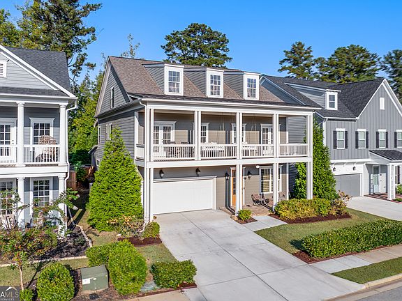 This stunning craftsman-style home offers 5 bedrooms and 4.5 bathrooms with a bright, open floor plan designed for modern living. Previously the model home for the subdivision with upgrades everywhere including automatic blinds. The welcoming curb appeal is enhanced by a spacious covered front porch and an upper-level balcony, perfect for relaxing and enjoying the neighborhood. Inside, you'll find a sun-filled family room with expansive windows overlooking the backyard, seamlessly connected to the gourmet kitchen. The kitchen features ceiling-height dove gray cabinetry, a large island with quartz countertops and seating, and a stylish designer backsplash. The breakfast area boasts charming shiplap walls and tall windows, while the open dining space is ideal for hosting gatherings. A separate office just off the foyer offers a quiet workspace, and a convenient powder room completes the main level. Upstairs, the luxurious primary suite includes a sitting area, a spa-like bath, and a large walk-in closet. The upper level also offers a lofted bonus area, four spacious secondary bedrooms with balcony access, three additional full baths, and a laundry room for added convenience. Enjoy the outdoors on the covered and screened back porch, perfect for year-round entertaining. Located in a sought-after neighborhood featuring a pool, tennis courts, playground, sidewalks, pavilion, and a picturesque pond with water feature. Experience Peachtree City's resort-style living with golf cart paths connecting you minutes to shopping, dining, and entertainment.