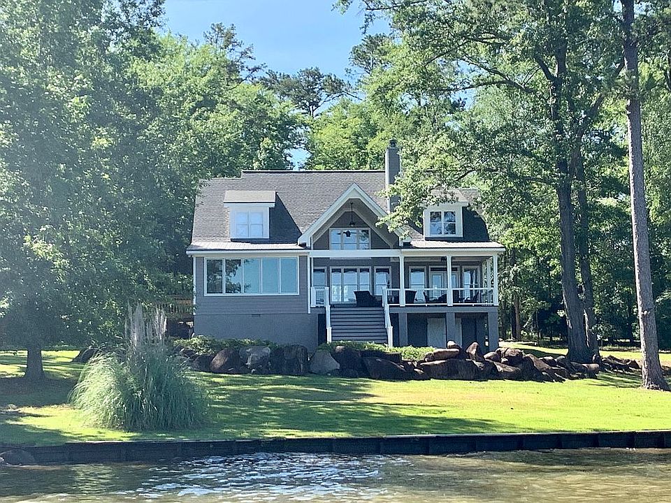 3200sq ft, 4BR/3BA home. Completely renovated in 2019. Walk in to gorgeous lake views in the 2 story great room with open floor plan to kitchen, sun room and dining room with coffered ceilings and hardwood floors throughout. Beautiful kitchen with granite countertops, renovated cabinets and large island with gas cooktop. Kitchen opens to bright open sunroom with a wall of windows for lake views. 2 sided fireplace opens to large 14 foot deep porch perfect for relaxing and taking in the beauty of Lake Sinclair. Two story master on main level is a show stopper with french doors opening to the lake views and the porch. Master bath has a lovely tile shower and jetted tub with fireplace and master closet. 2 additional guest bedrooms and bathroom on main level are perfect for family or guests. Second level has a large bedroom with lake views, full bathroom and a loft that is perfect as a bunk room or game room.