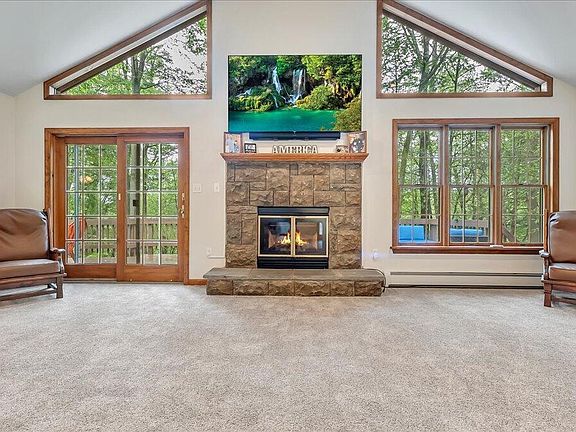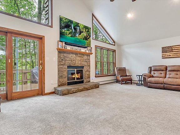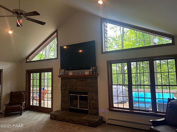 Tanglwood Lakes meticulous 3 Bedroom/2.5 Bath Ranch home. This beautiful lake rights home offers a primary suite with walk-in closet, Living Room offers a cathedral ceiling and stone faced wood burning Fireplace, Sliding Glass doors will lead you out to a generous sized entertainers Deck, Eat-In Kitchen with SS Appliances and Island and separate Dining Room. The Laundry Room is located on the Main Level for easy access, Attached 2-Car Garage and ready to finish full basement. Recent repaved driveway and exterior painted house and deck. Home comes fully furnished including power tools, lawn mower, gas powered leaf blower, chain saw and portable Generac Generator. Tanglwood Lake and Lake Wallenpaupack lake rights. Amenities include 18 hole fazio design golf course,Beach area on Lake Wallenpaupack, Tennis and Pickle Ball court, Fire pit overlooking the lake, Volley Ball Court, Children's Playground, Ball Field, Walking Trail, Security, Boat slips on availability. The home is in a convenient location within the community and sits on a private setting.