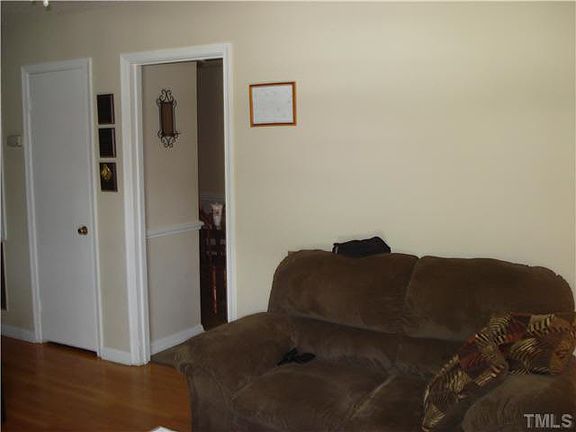 Home features three bedrooms, one and one-half baths, living area and eat in kitchen. Beautiful hardwood flooring in living room. Master suite features walk in closet and half bath. Spacious secondary rooms! Rear door off dining area leads to the patio and spacious back yard where kids and pets can play. Large out buildilng. No sign in yard.