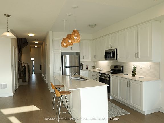 Open concept layoutElegant hardwood floorsSmooth flat ceilingsUpgraded pot lightsBeautiful white kitchenUpgraded quartz countersStainless steel appliances