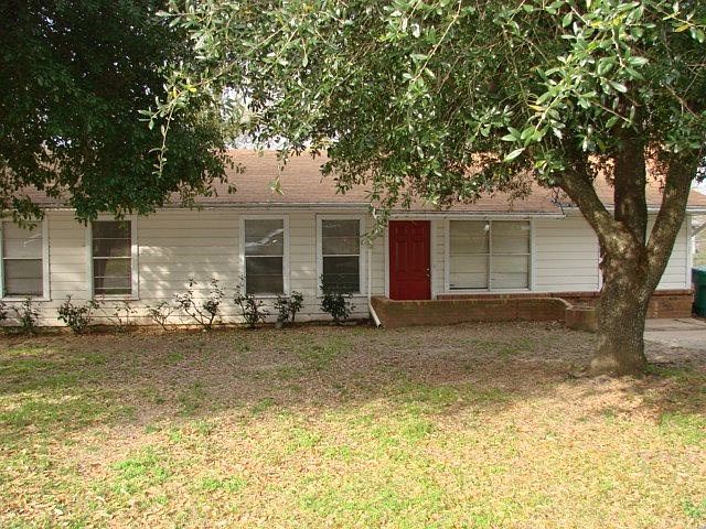 Lovely tree-shaded setting for this home with large open living room with fireplace and covered deck overlooking fenced back yard.