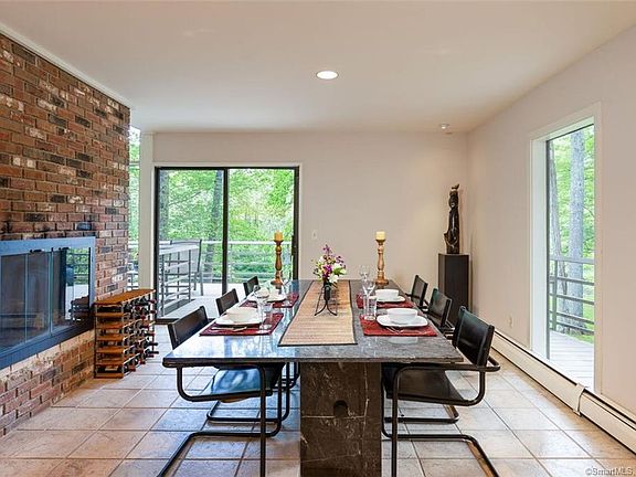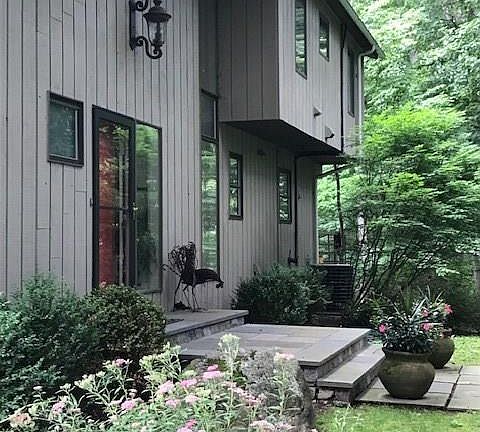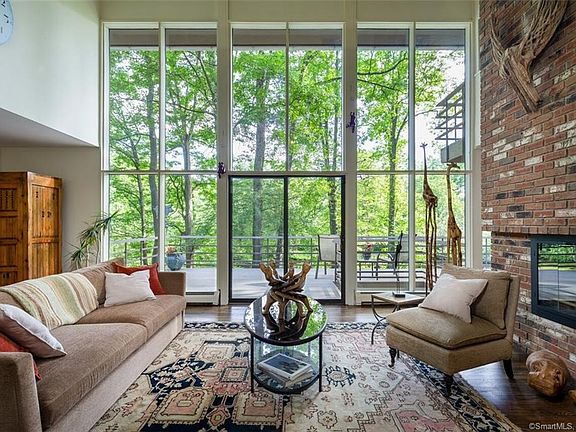 Live at one with nature in this inviting, tastefully updated 5 bedroom, 3 1/2 bath colonial with floor-to-ceiling windows, balconies, and views from every room of more than two acres of beautifully landscaped lawn, a pond, and abundant wildlife. From the foyer, enter the spacious living room with vaulted ceiling leading onto a wrap-around deck overlooking the pond with herons and ducks. A two-sided fireplace adjoins the living room and dining room, which is open to the newly-renovated spacious kitchen with gorgeous quartzite counters and Thermador appliances. The family room provides additional room for gathering inside and outside on the balcony. Upstairs is a beautiful master suite with its own fireplace, bath, and dressing area, in addition to two others bedrooms, a balcony, and a full bath. The walkout lower level has two more bedrooms, another full bath, and another family room with fireplace. So many ways to enjoy this beautiful home and property.