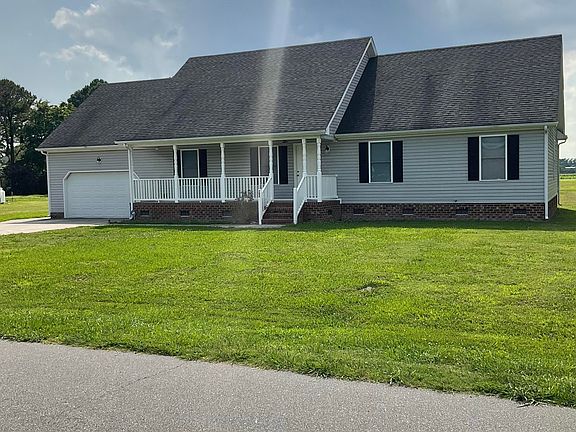 Nice open ranch in Elizabeth City. Offers a living room, formal dining room, Primary suite with tray ceilings, private bathroom, separate shower and dual sinks, kitchen granite countertops, breakfast area and FROG that can be possible 4th bedroom. LVP and carpet throughout. Large back deck. Close to base and shopping. Yearly lease. Credit, background & reference check required. No pets.