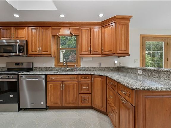 Charming1950 ranch meticulously maintained over the years. You will feel warm and welcome as you step from the foyer into the living room with a cheerful wood-burning fireplace. Gleaming hardwood floors throughout. Elegant custom cherry cabinet kitchen built with lots of love and new stainless steel appliances. Daylight filters throughout the bright dining area with a beautiful bay window, a side entrance to the front, and an atrium door opening to an expansive deck. Perfect for those summer BBQ's overlooking a picturesque and private backyard. Spacious master bedroom with a 7+ foot closet. Bonus family room in basement with a small second kitchen including laundry. Interior freshly painted. Potential for an in-law unit with direct walk-out access. Double-width driveway. No need to tandem park! The exterior of the home recently painted! Great location in established Oakdale neighborhood. Easy access to Routes 95/93, shopping, and fine dining nearby. Offers due Monday @ 1:00pm