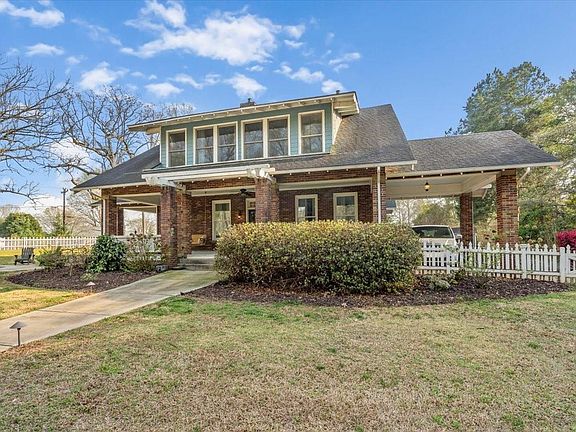 Welcome to this spectacular fully updated 1920s charmer in Fort Mill, SC! This home maintains all its historical charm while providing modern living conveniences. Special features include: wrap around front porch, high ceilings, hardwood floors, tons of windows/natural light, original fireplaces, a dining room with built in china cabinet, and an open flow for plenty of entertaining space. The updated kitchen features modern cabinets, a butchers block prep-station, peninsula with bar stool seating, premium white granite counter, and a marble tile backsplash. The modern laundry/drop zone has room for plenty of storage. The primary bedroom on the main floor features an original fireplace and luxurious ensuite with marble tile shower, claw foot tub, and white granite counters. Hardwood floors continue upstairs in two spacious bedrooms & a flex/office space that share access to a full hall bathroom, w/ original features! Enjoy time outside overlooking the firepit & huge flat fenced in yard!