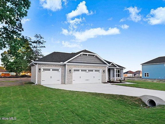 Two additional bedrooms and a full bath are thoughtfully located on the opposite side of the home. Additional highlights include a finished 3-car garage with an additional extension of 4 FT, openers and remotes, designated laundry room, and a stylish vinyl and stone exteriorâ€''all situated on a spacious lot. No city taxes and convenient to SJAFB, Kinston, New Bern, Hwy 42, and the NC coast.