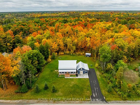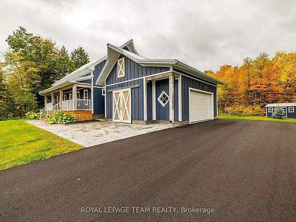 Welcome to 102 Brookberry Crescent a remarkable 2020 custom build by Lockwood Brothers in the sought-after Flint Hill Estates community. Surrounded by majestic maples, this home combines timeless craftsmanship, upscale finishes, and an extensive list of upgrades that elevate everyday living. From the curb, youll notice the striking metal roof and durable Hardie Board siding, complemented by a paved driveway, stone walkway, and landscaped retaining wall. Inside, the light-filled open-concept layout showcases a gourmet kitchen with a large island, premium cabinetry, and seamless flow to the dining and living spaces. A cozy fireplace anchors the main living area, while automated blinds and quality finishes add both style and function.The primary suite features a walk-in closet and spa-inspired ensuite, and additional bedrooms are generously sized with easy access to a full bath. The fully finished basement is a showstopper, offering a bright family room, gym area, fourth bedroom, and full bathroom perfect for extended family, hobbies, or a private home office. Outdoor living shines here: relax in the screened-in deck or soak under the stars in the included hot tub, creating a true backyard retreat. A shed, upgraded garage floor, water treatment system with reverse osmosis and UV, and a battery backup sump pump all contribute to everyday comfort and peace of mind. Set on a 1+ acre lot that is private and treed, this property offers the perfect blend of country serenity and modern convenience. Enjoy the peace and privacy of your own wooded retreat while still being just minutes from all the amenities of Kemptville and quick access to Hwy 416 for an easy commute.