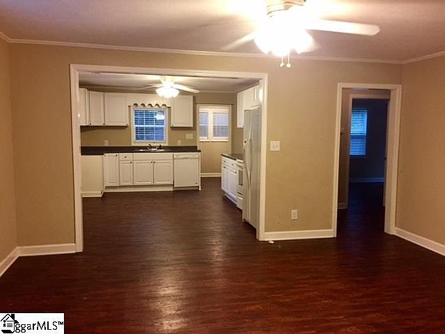 SUPER CUTE BUNGALOW! Close to the Westside of Spartanburg. A nice wooded street with shady oak trees lining the street. This home has been totally renovated inside and out. Updated wiring, plumbing, and R38 insulation added, vinyl siding, newer heat pump and windows. Step inside to see a large open floor plan, all white kitchen with plenty of cabinet space. All kitchen appliances to remain including a refrigerator with water/ice on the door. There is plenty of room for a large dining table in this eat in kitchen. Also a large walk in laundry room with cabinets for storage. The laundry room leads outside to a large level fenced back yard. Durable vinyl wood like floors throughout for maintenance free upkeep. 2" blinds throughout the home installed. Perfect started home or great retiree space in this low maintenance home that is convenient to everything. Just move in!