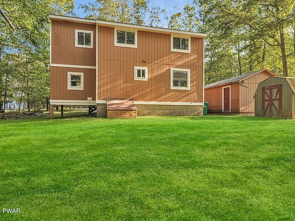 TOTALLY RENOVATED THREE-BEDROOM TWO-FULL-BATHROOM CONTEMPORARY HOME SET WITHIN A DESIRABLE POCONOS COMMUNITY. Welcome to this stunningly renovated home, perfectly situated on a private lot and thoughtfully designed to blend comfort, style, and function. From the moment you arrive, the charm begins with a covered front porch that invites you inside. Step through the door to find a fresh, modern interior featuring all-new paint and beautiful new flooring that flows effortlessly throughout the home. The open-concept living space is highlighted by soaring vaulted ceilings, creating an airy and inviting atmosphere. Newly installed ceiling lighting and fixtures add a touch of sophistication, ensuring every room feels bright and welcoming. At the heart of the home is the beautifully updated eat-in kitchen, showcasing gleaming granite countertops and ample space for cooking, casual dining, and entertaining. Adjacent, a dedicated dining room provides the perfect setting for hosting family gatherings or dinner parties. The thoughtful layout includes a first-floor bedroom, making the home ideal for those seeking single-level living or convenient guest accommodations. Upstairs, the primary suite is a true retreat, boasting a spacious walk-in closet and a spa-like bathroom with a luxurious walk-in tile shower. A second brand-new bathroom offers the same attention to detail, featuring modern finishes on the lower level. Outdoor living is equally enjoyable, with a covered side porch perfect for summer barbecues or relaxing on warm evenings. A one-car garage with electric and an additional shed provides excellent storage and workspace options. The private lot offers a peaceful setting while keeping you close to local amenities and commuter routes. Located within the Delaware Valley School District, and just minutes from the Dingmans Bridge and Town of Milford, this home is the affordable way into Milford you have been waiting for!