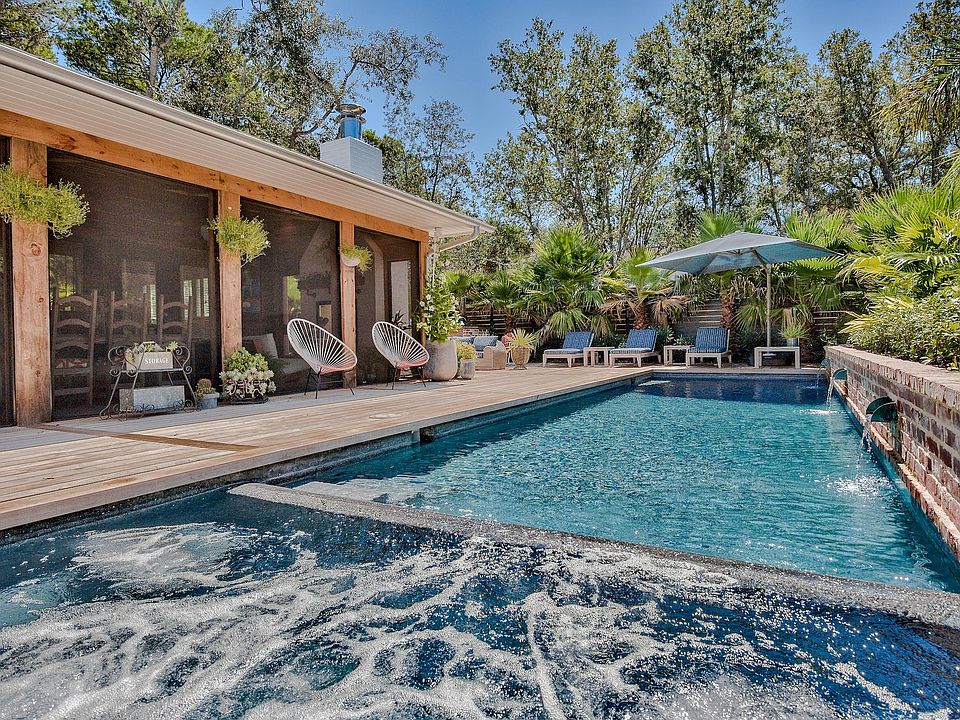 This completely 2019 remodeled home is the perfect beach oasis, nestled on arguably the quietest street off 30A with close proximity to all of the eastern end's amenities. Once you arrive, you're immediately brought back to the Old Florida of years gone by. As you enter this single level home, you're greeted by an expansive living area with 13' vaulted ceilings in the living room complemented with a gorgeous brick fireplace. Adjacent is a large kitchen that calls out for entertaining and is designed for the true chef with an abundance of custom cabinetry, a huge walk-in pantry, a professional size range, two dishwashers, and two refrigerators. 120 year old reclaimed oak flooring is prevalent throughout, reclaimed heart pine highlights the wine bar and cozy study nook.The master bedroom 2019-10-28