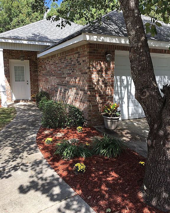 The living room, dining room and kitchen have an open floor plan with beautiful tile flooring. The kitchen has all new granite countertops, industrial sink and faucet, and new stainless steel appliances. All three bedrooms are nicely carpeted. The dining room opens to the enhanced patio with new French doors. The master bath has a jacuzzi tub lined in granite. The toilet is tucked into an alcove for more privacy. Large beveled mirrors and exceptional new, modern lighting hang over both bathroom sinks. The master bedroom has a nice walk-in closet. The home has been freshly painted and the yard enhanced with sod and beautiful flower beds. A privacy fence encases the entire back yard and is 70% new. Built at the end of the street provides privacy and little traffic. Location, location is a key aspect!!