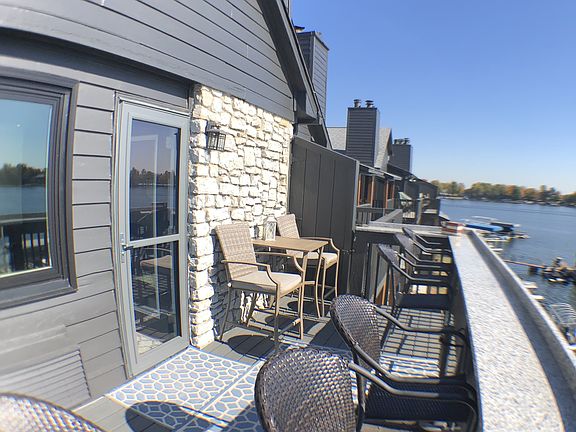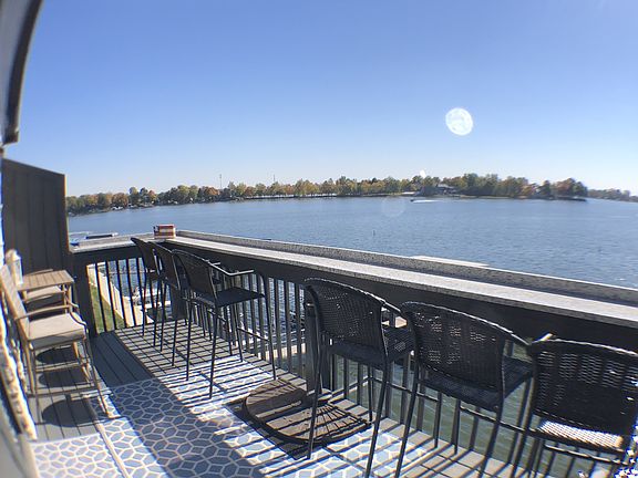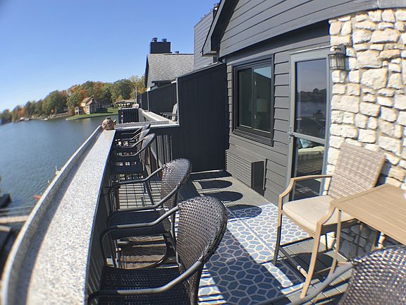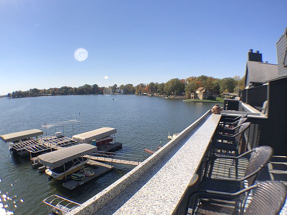 Waterfront one bedroom fully-furnished condo in Mallards Point Resort with third-story (top floor) panoramic view directly over Morse Lake. This very comfortable, light and bright condo features roomy bedroom with king-size bed and sitting/dressing area, bathroom with walk-in shower and separate vanity, living & dining area with picturesque fireplace, windows with direct view over Morse Lake, and couch with pull-out double bed for your guests. Kitchen with all stainless-steel appliances and dining bar. Inviting "penthouse" patio with marble dining rail and cocktail table/chairs for outdoor dining or stargazing directly overlooking largest body of water on Morse Lake. Each room has streaming TVs, air-filtered wall A/C & heaters, ceiling fans for extra comfort. Laundry closet has washer & dryer. Desk with office chair and wifi for remote online work or study. This quiet condo community on a peninsula over the large lake has plenty of parking but zero traffic. In addition to lake features, this accommodation includes your use of indoor heated swimming pool just steps away, plus paved hiking & biking trails within walking distance. Boutique food market and multiple restaurants also close by. This idyllic nest provides amazing views and stimulating recreation at your doorstep, plus easy access to the large market resources of Indianapolis and its vibrant northern suburbs.