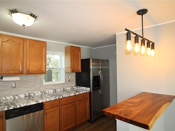 Wonderfully Updated & Freshly Painted Three Bedroom Available for Immediate Occupancy. A Custom Kitchen Features Wood Cabinets, Generous Countertop Space, Sleek Backsplash, A Dual Basin Sink with Upgraded Faucet, New Stainless Steel Appliances and a Bonus Kitchen Island with Modern Chandelier Lighting. Generous Lighting Throughout. The Living Room Features A Decorative Fireplace and Access to a Cozy Patio. Upstairs, All Three Bedrooms Feature Large Closets and Straightforward Floorplans. An Enormous, Easily Accessible Hall Closet is Prefect for any Storage Needs. The Tastefully Updated Bathroom Features Custom Tile with Inlay, Updated Bath Fixtures and a New Sink Vanity. High Efficiency Washer & Dryer Installed in the Basement, Laundry Sink and Bonus Countertop Space too. Full Basement is Complete with Access to the 1-Car Integral Garage and Ample Storage Space. Superb Location, Property is Centrally Located From Frankstown Rd. Pets Considered w/Pet Fee.