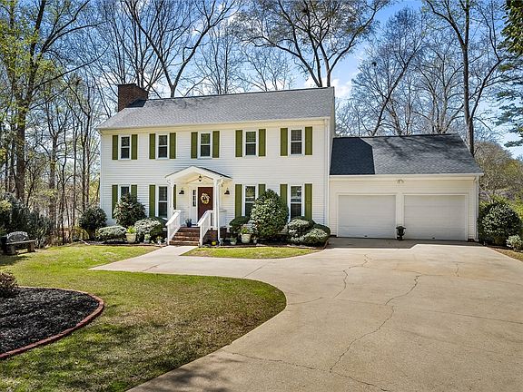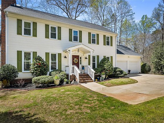 Discover the charm of this 4 bedroom, 3.5 bath traditional style home nestled within Calhoun Forest Subdivision and award-winning Pickens County School District. Situated on half an acre and convenient to Lake Hartwell and Clemson University, this property is a hidden gem, offering beautiful views of the serene, wooded backyard and pleasant sunsets from the tiled deck. Step inside to find hardwood floors throughout the main level, leading you towards an inviting eat-in kitchen. Cherry wood cabinets, stone backsplash, granite countertops and a gas range come together to create a kitchen that's both functional and stylish.