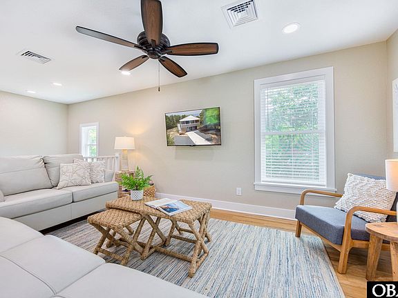 Nestled in the picturesque and sought-after Bayberry Bluffs community, this stunning, fully updated 4-bedrooms (Currently used as 5 bedroom but septic permitted for 4), 3-bathroom beach cottage is a hidden gem. Septic is permitted for 4 bedroom, however there are 5 bedrooms. This space could be used as an office. Renovated by the reputable Macko Construction, it boasts meticulous attention to detail, with comprehensive exterior upgrades including a new roof, siding, windows, decks, septic, and a beautiful screen porch. The expansive interior exudes elegance and comfort, featuring reconfigured bedrooms and bathrooms, newly installed stairs, updated insulation, electrical systems, HVAC, plumbing, drywall, doors, trim, paint, and flooring. Located on the East Side of Duck, this alluring home is perched at an ideal elevation (X Flood Zone), providing easy access to the best the area offers. Stroll through upscale dining options, gourmet markets, boutique shopping, yoga studios, chic coffee spots, and a new soundfront boardwalk, all within a short walk. Envision yourself relaxing on your very own spacious lot 13,000 sq. ft, with ample room for a tranquil pool. Step into the welcoming main entrance, leading you to the bright and airy great room with an open-concept floor plan, and new Karndean Vinyl Woodplank flooring throughout. The chef's kitchen delights with stainless steel appliances, abundant cabinetry, and an eat-on bar for three. Savor your morning coffee or lunch breaks on the vast screen porch or grand sun deck with composite decking. Descend the hall to discover a full hall bath, a spacious primary bedroom with an ensuite bath, and an additional bedroom. On the ground level, discover a versatile game room with a kitchenette and full-size refrigerator, perfect for entertainment. Additionally, you'll find one more full bath and two more bedrooms. With only 16% lot coverage, there is ample room to expand and enhance your outdoor living experience. The community is a warm, inviting mix of primary residences, second homes, and rentals, where residents must take delight in the convenience of a private street, perfect for driving your golf cart to the beach while connecting with neighbors along the way. Gulf Stream Pools says a pool will fit, see broker notes.