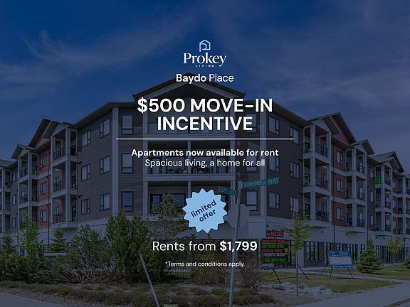 - Heat- WaterBaydo Place PromoLIMITED TIME OFFER$500 MOVE-IN INCENTIVE AVAILABLE!!ApartmentThese high-end, spacious apartments are family-friendly (pets welcome on the first floor units only) and feature underground heated parking with extra storage available. Enjoy a lifestyle in a quiet, relaxed community, close to nature and still within reach of all the amenities you're looking for. There's even a walk-in clinic at street level in one of the buildings.ApartmentNew apartments in Stonebridge now available!Building features:- Elevator- Keyless building entry- Underground parkade- Commercial vendors on main level- Surrounded by all Stonebridge amenities