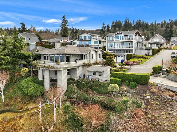 Nestled in Old Town Mukilteo, situated above ferry dock, stunning custom-built home has a front-row location on Puget Sound w/ views of the islands, mtns, sunsets, & maritime traffic. Rare home w steps from back door leading to Mukilteo Lane for easy access to Sounder, Ferry, & beach. High end finishes and appliances grace this 3 bedroom home along with entertainment sized deck with 180 degree views. Stunning chef's kitchen is bathed in natural light and looks out through the view windows in the living room. Huge center island is perfect for gatherings and casual dining. Primary ensuite also has unparalleled views & a private deck. Enjoy any of the 9 nearby restaurants and coffee shops, lighthouse, & beach- All just a a short walk away!