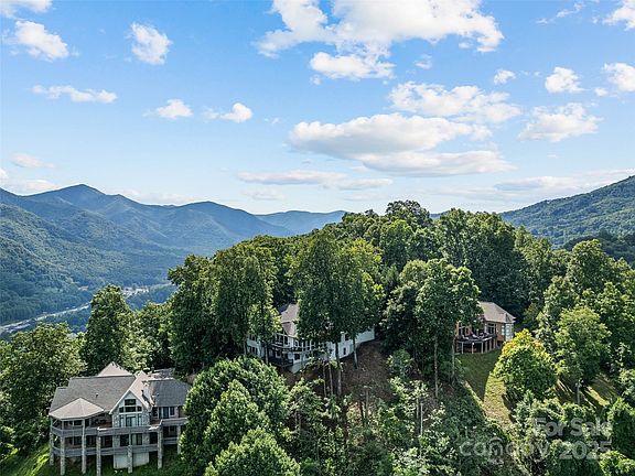 ***UPDATE: THE VIEW HAS BEEN OPENED AND IT IS BREATHTAKING!*** This exquisite luxury residence offers an unparalleled mountain living experience. Step inside a grand entryway with vaulted ceilings. The main level primary ensuite bedroom offers a gas log fireplace and dual closets. A lovely staircase leads to a large en-suite bedroom. The gourmet kitchen is a chef's delight with high-end wood cabinetry, granite countertops, and is open to the great room with an eat-in area. The immaculate 2-car garage features durable outdoor carpet. The finished walkout basement features a second living room with a wet bar and gas log fireplace, another primary ensuite bedroom, and an exquisite, spa-like bathroom. The basement also offers an additional 1,376 square feet of unfinished space for expansion potential. Enjoy the tranquility and natural beauty of Maggie Valley from two covered decks and a screened porch. Modern amenities include a tankless hot water heater, Beam Serenity Plus Water Filtration System, and an ADT Security System.