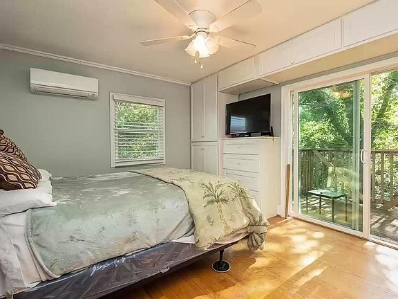 This two-bedroom, one-bath furnished home is one of the only rentals in the area with a private balcony overlooking the creek truly one-of-a-kind.