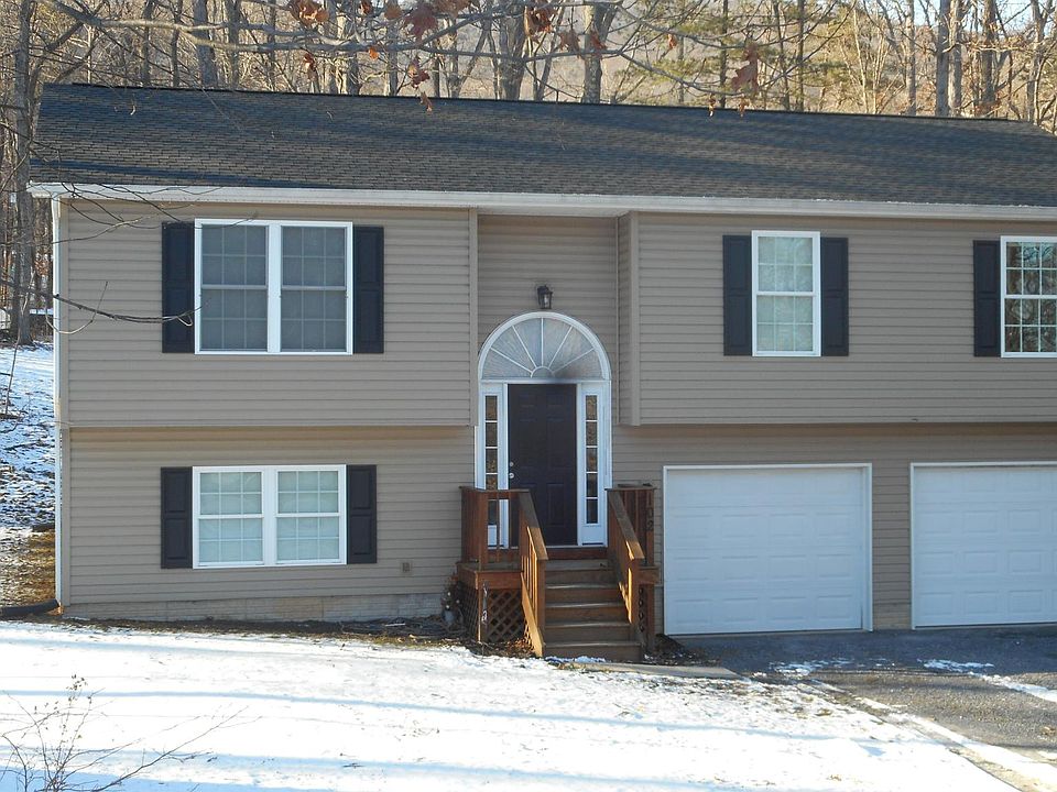 Split foyer with 3 BR, 2 baths upstairs; family room, bonus room, laundry room, 1/2 bath and 2 car garage on lower level. Located in Shawneeland (8 miles west of Winchester) close to mailboxes and bus stop. Private well/septic. Washer/dryer hook up, large rear deck, surrounded by woods. No smoking, cats, vicious breed or mix thereof dogs allowed. Small dog considered on case by case basis. High speed fiber optic cable/internet available. Tenant pays all utilities in this total electric home.