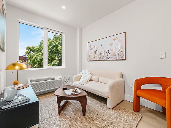 Residents enjoy access to a furnished rooftop deck, lounge areas, bike storage, and more all on a quiet, tree-lined block with easy access to the 3 and 4 trains.