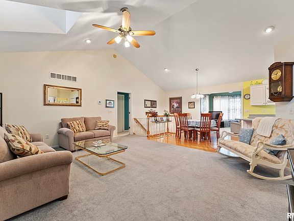 *OFFER IN PROGRESS WITH 72HR CLAUSE* Rare Find! Immaculately cared for 1 owner home in Blue Grass, Iowa! 2 bedroom, 2 bath ranch with beautiful cathedral ceilings throughout most of the main floor! The open concept main floor features a large, bright living room and informal dining area and kitchen. The dining area and kitchen have fantastic hardwood flooring and plenty of cabinet space! Plus all appliances stay! Off the kitchen you will find main floor laundry with the same gorgeous hardwood, and a pantry & coat closet plus a utility sink! Bedroom 1 features a large walk in closet, huge cathedral ceiling and it's own 3/4 bathroom! Bedroom 2 has those same amazing hardwood floors and cathedral ceiling! There is also a 2nd main floor full bathroom! Enjoy relaxing in any kind of weather in the inviting Sun Room! The basement features a large rec room and office area with recently replaced laminate flooring! It is ready for a 3rd bedoom, with egress window already in place! Drains already roughed in for an additonal bathroom in the basement! Stay dry from the elements when you get out of your car in the attached 2 car garage! Fully fenced back yard! Many updates including roof in 2020 and HVAC in 2022! This home is an absolute gem!