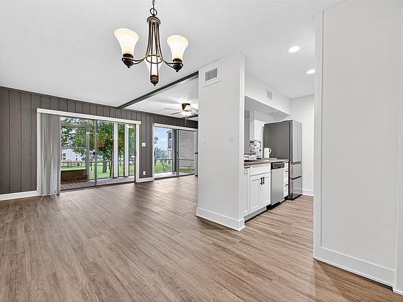 Trendy coordinating backsplashUpdated bathroomUpdated appliancesSleek sliding glass doorDouble-pane windowsStackable washer and dryerQuartz countertops