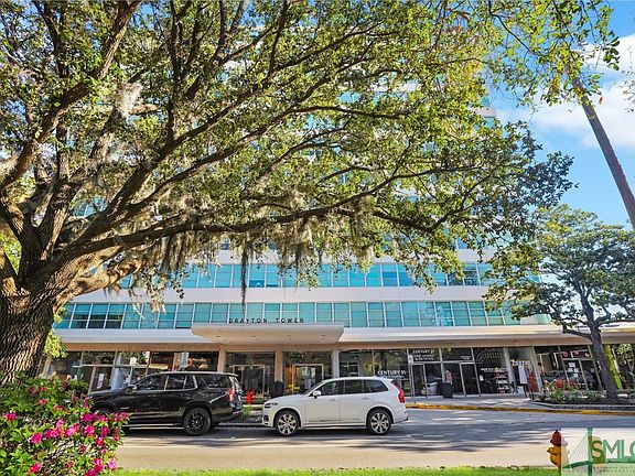 Dreaming of waking up to downtown Savannah right outside your window? You will love this 1-bedroom 1.5-bath condo in iconic Drayton Towers! This 1,044 sq ft unit features an open floor plan with sweeping views of the Savannah skyline and Talmadge Bridge. The modern kitchen features granite countertops, stainless steel appliances, and a casual dining bar. The north-facing wall of windows fills the space with natural light, perfect for a living area, dining space, and home office setup. The primary suite includes a walk-in closet, dual vanities, soaking tub, and separate shower. Additional perks: guest half bath, in-unit laundry, and abundant storage. Amenity fee includes water, electric, gym, and night security. Live in the heart of historic downtown Savannah with River Street, Colonial Park, Chippewa Square, restaurants, shopping, and world-famous spots all within walking distance. Schedule your private showing today and experience elevated downtown Savannah living!