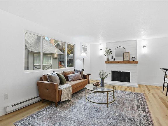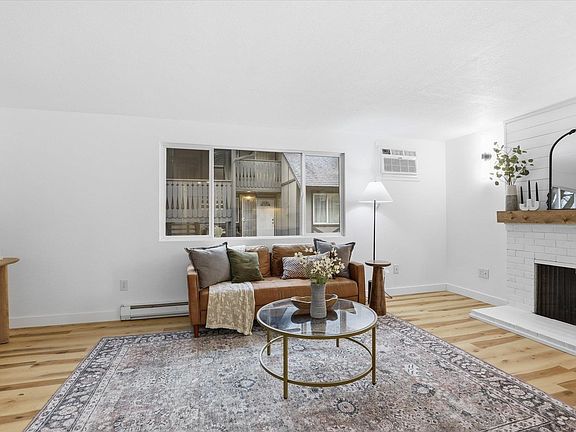 This refreshed ground-floor condo delivers easy living with a clean, modern feel. New countertops, flooring, backsplash, vanity top, shower surround, tub, lighting, and a wall A/C give the home a crisp update. The kitchen features newer appliances and good workspace, while the living area gains character from a shiplap-wrapped fireplace. The en suite bedroom offers a walk-in closet plus in-unit washer and dryer. A garage, ample storage, baseboard heat, and a location close to daily essentials keep life simple. Association dues cover major utilities and exterior care, making this a low-maintenance option with practical value.