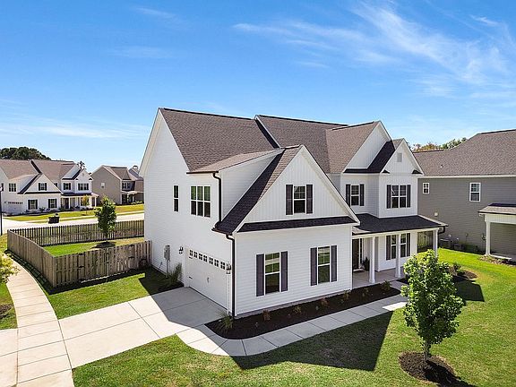 Welcome to the beautiful coastal community of Magnolia Reserve! Situated on a corner lot, this Masonboro home by American Homesmith offers plenty of space and luxury with its 5 bedrooms, 4 FULL baths and 9 foot ceilings throughout. The covered front porch leads you into this stunning and open floorplan home. The downstairs living spaces include a formal dining room; a spectacular kitchen with quartz countertops, subway tile backsplash, stainless steel appliances and an oversized island; a sunny breakfast nook and an incredible family room complete with a cozy gas fireplace surrounded by custom trim work. There is also a bedroom with an ensuite bathroom on the first floor. Upstairs is just as spacious and includes the remaining bedrooms, the laundry room, and an office/tech room. The primary suite features a tray ceiling, dual sink vanity, soaking tub, separate fully tiled shower and a generously sized walk-in closet. Two secondary bedrooms, a large full bathroom, and the 5th bedroom with its own ensuite bathroom round out the second floor. Additional home highlights include window treatments throughout, an epoxied side load garage, a fully fenced backyard, a fantastic community pool and, of course, close proximity to the beach.