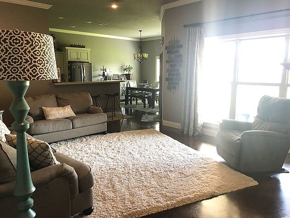 Beautiful 4 bedroom 2 Bath Home located on a large corner lot in Brookland AR. Home features include. Open floor plan, Acid stained concrete floors throughout, 10’ ceilings in majority of house, Crown molding. Wired security cameras. Master bath has his and hers walk in closets, double vanity, custom tiled shower with glass door and large tub. LED lighting inside and out. Custom cabinets stainless steel appliances. Natural Gas fireplace. Fans in every bedroom, living room, and back porch. 3 additional spacious bedrooms on the opposite side of the home all with large closets. Custom cabinetry throughout each closet and laundry room. Full size 2 car garage that is side entranced with large storage closet in garage; garage floor has also been epoxy sealed. Spacious decked attic space for additional storage. Large corner lot also already wrapped with a privacy fence.