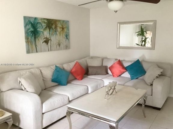 Welcome to this cheerful 2 bedroom 1.5 bath. Beautifully maintained and cared for with pride. Lake view corner unit located on the 2nd floor. Easy access to steps or elevator. New air conditioner May 2024. Neutral ceramic tile throughout as well as terrace. Granite counter tops in kitchen. Sliders from both bedrooms to patio. Walk in closet. Ceiling fans in all rooms and screed in patio. Century Village is 55+ gated community with security patrol. Resort style amenities which include indoor and outdoor pools, clubhouse, state of the art theater with live shows, bus transportation, tennis, pickle ball and more. Close to restaurants and shopping. Can rent immediately. One time per year. Internet, cable and water are included in the HOA. Easy to show.